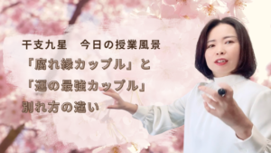 【授業風景】九星で見る 人の出会いと別れの時 2024 4/01 今日の授業風景 九星の授業 2024年4月1日 2024年4月1日 人の出会いと別れは 運のように見えますが、 盤を起てていくと、ちゃんと法則に則っていることが分ります。 人生は、自分の意思なのか それとも、動かされているのか… 干支九星盤を読み解くのは 奥深いです 今日の授業風景 九星の授業 よかったらシェアしてね! URLをコピーしました! URLをコピーしました! 【授業風景】刑・冲・破と九星のグループ 【授業風景】『三位一体論』より 物事が動く瞬間の四盤鑑定 この記事を書いた人 uranai_akane さいたま市の占いカウンセラー朱かねです。私は、主に、家庭を持つ女性の方に、家庭の悩み、お金の悩み、健康の悩み、自分自身のことについての悩み、方位の相談などに、占いと心理学、スピリチュアルを使って、おこたえしています☆ママの笑顔がみんなの幸せ☆一緒に、楽しい毎日を作っていきましょう^^ 毎月第2日曜日に占い教室開催中です♪ 関連記事 【授業風景】望月流 簡単な相性の見方 #100 2024年4月17日 【授業風景】鑑定盤や流年法をちゃんと使う:開運させるための方位の出し方 2024年4月12日 【授業風景】「腐れ縁カップル」と「運の最強カップル」の別れ方の違い 2024年4月10日 【授業風景】自分の星が中宮に入った時/巳五黄の成功ポイント 2024年4月9日 【授業風景】対冲星が人生に与える影響・流年法の対流と対冲星の出現が重なった時 2024年4月4日 【授業風景】『三位一体論』より 物事が動く瞬間の四盤鑑定 2024年4月3日 【授業風景】刑・冲・破と九星のグループ 2024年3月28日 【授業風景】三合・三支並びが強い理由/生旺墓について 2024年3月27日
