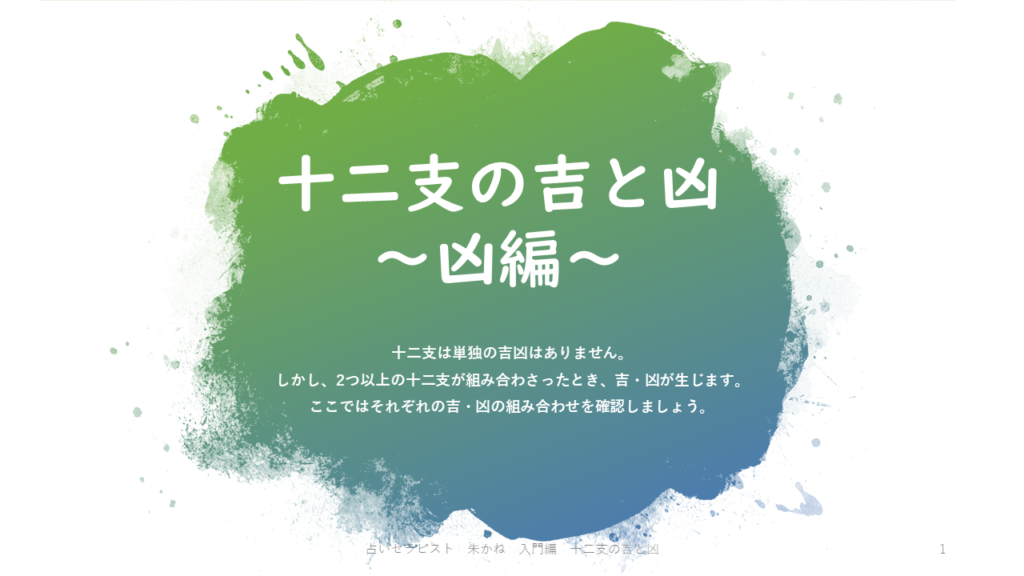 【4◆十二支の吉凶~吉編~】 今回は十二支の吉と凶についてお話しします。 九星には、「相生・相剋・比和」という関係性がありますが、バランスを重視する五行にとって、「相生」は常にいいとは限りませんし、相剋が常に悪いとは限りません。 少な...